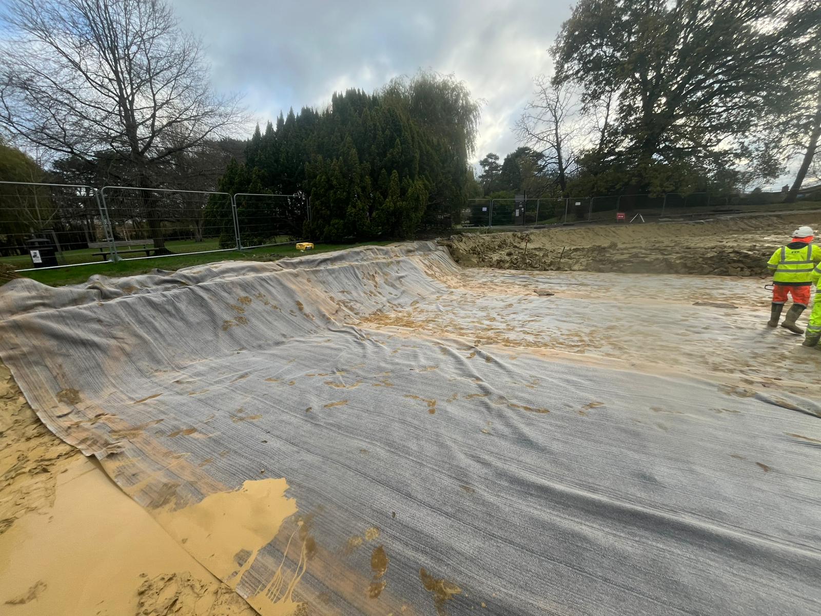This method was selected as it offers a strong environmental benefit by making good use of suitable clay material already available on site, while reinforcing it with bentonite to ensure water retention. It supports the project’s aim of restoring the pond in a natural, sustainable way and helps minimise the need for synthetic materials or transported soil.